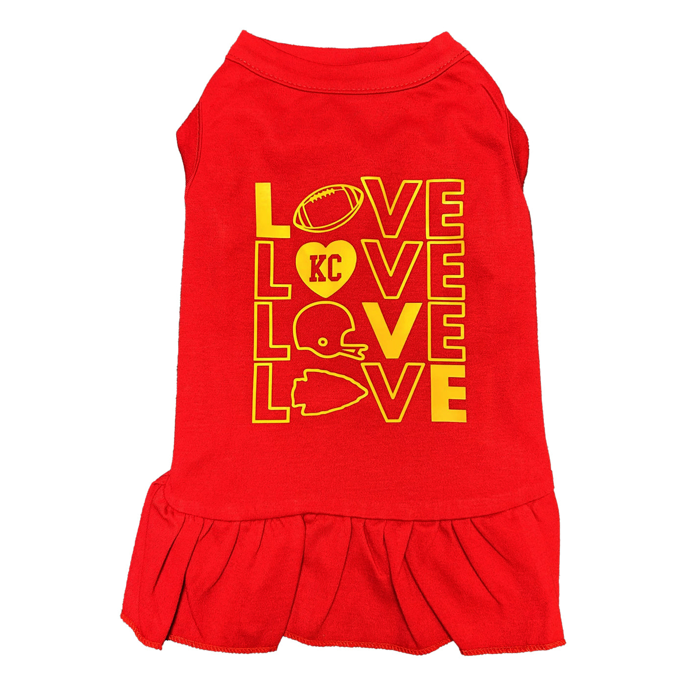 We all love the Chiefs! Let your pup show they're a tail wagging fan in this precious KC Love Dress!