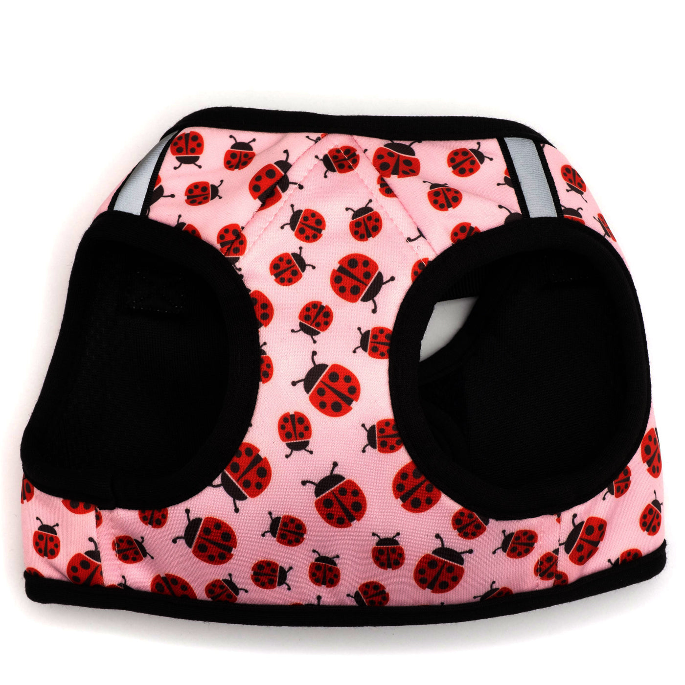 The cutest print for your little Love Bug! Great for walks in the park or riding in the car, this harness features ultimate comfort and durability! Breathable mesh lining wicks away moisture, drying and cooling playful pups. Fastens around the back with strong Velcro and a back release buckle to keep your dog secure. Spacious, fabric-trimmed neck and leg openings support natural movement. Simply have your dog step his or her front legs in, secure across the back, attach the leash and go!