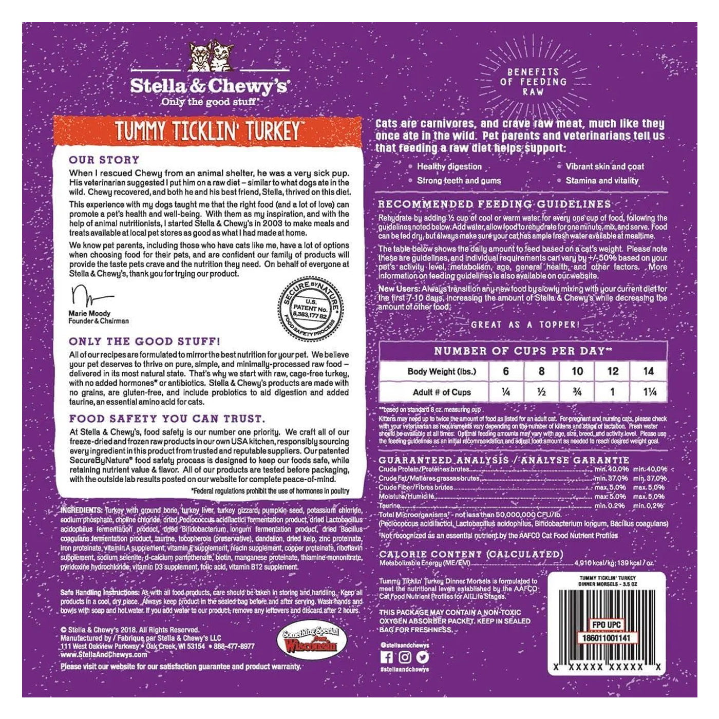 These freeze-dried raw morsels offer 100% complete and balanced nutrition for kittens and adult cats. Rich in taurine, Dinner Morsels are made with responsibly-sourced proteins and consist of 98% meat, organs and bones. Freeze-Dried Raw Dinner Morsels have an irresistible taste cats love and are fortified with vitamins, minerals, probiotics and antioxidants to support whole-body health.